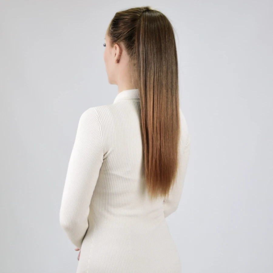 Predstavljamo vam vrhunski ravan rep od veštačke kose u efektnoj prelaznoj nijansi Ombre svetlo smeđa. Izrađen od premium futura vlakna koje verno podražava izgled i osećaj prirodne kose, ovaj rep će postati nezaobilazan dodatak za vaše svakodnevne i svečane frizure.